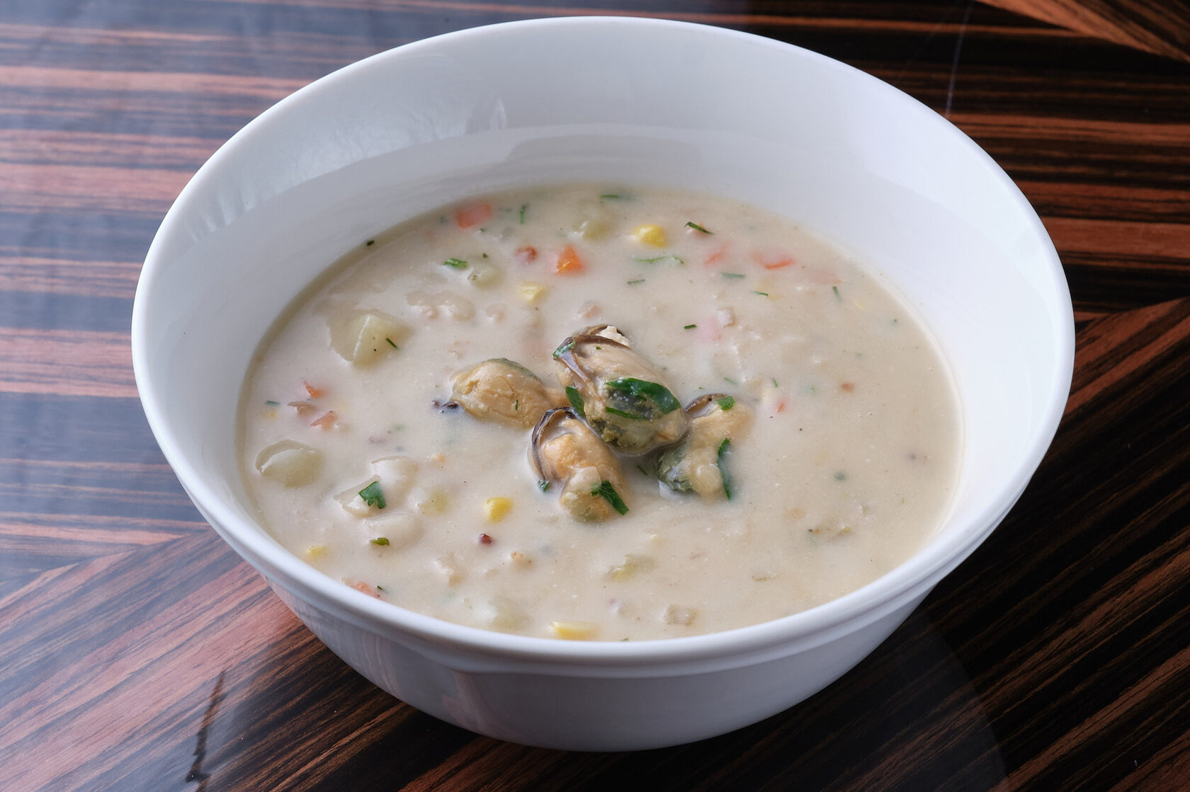 Суп Чаудер с мидиями и судаком